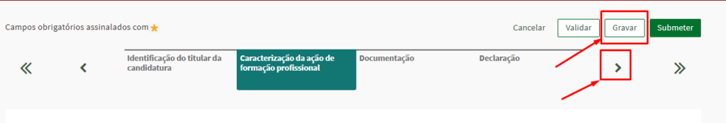 19- Depois de todos os campos preenchidos deve validar os campos, guardar e avançar para o próximo separador “Documentação“