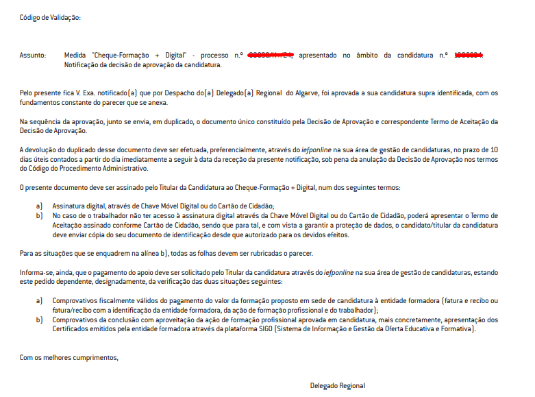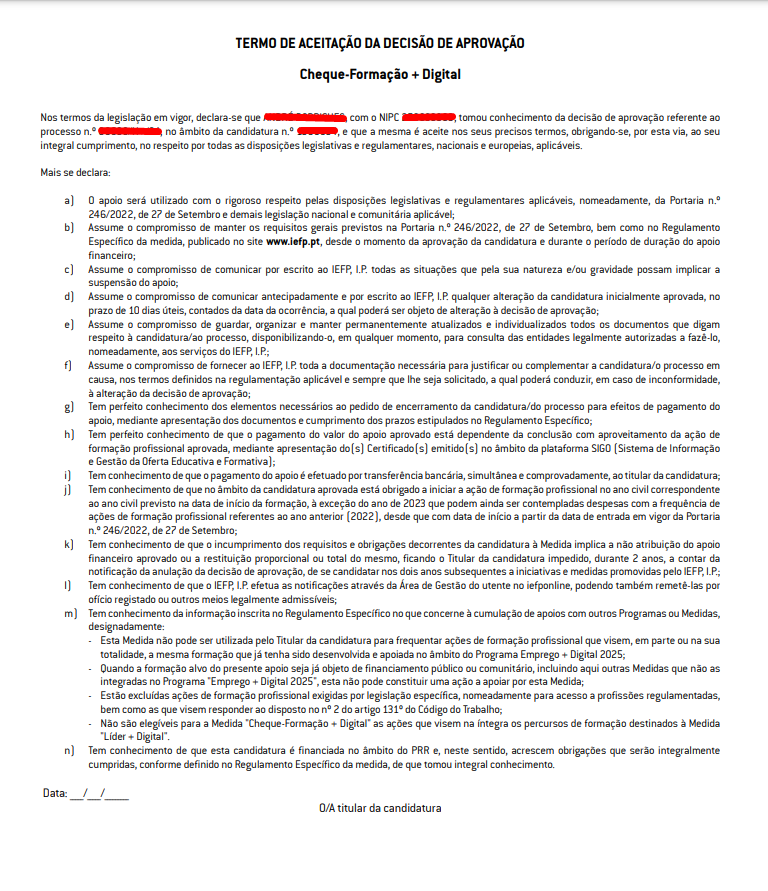 - Passo 4: Responder à decisão de aprovação do IEFP