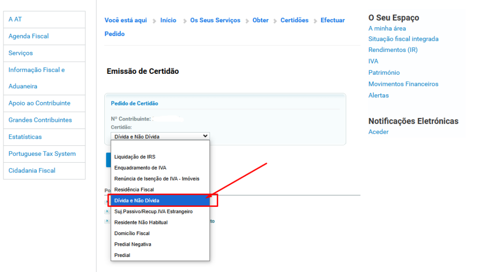 Deve fazer login na sua conta no Portal das Finanças em: https://www.portaldasfinancas.gov.pt/