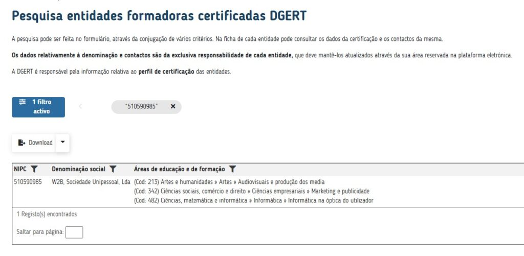 Para o caso de estar inscrito num dos cursos de Vasco Marques, ao colocar o NIPC: 510590985 automaticamente irá assumir a Designação da entidade W2B, Sociedade Unipessoal, LDA.