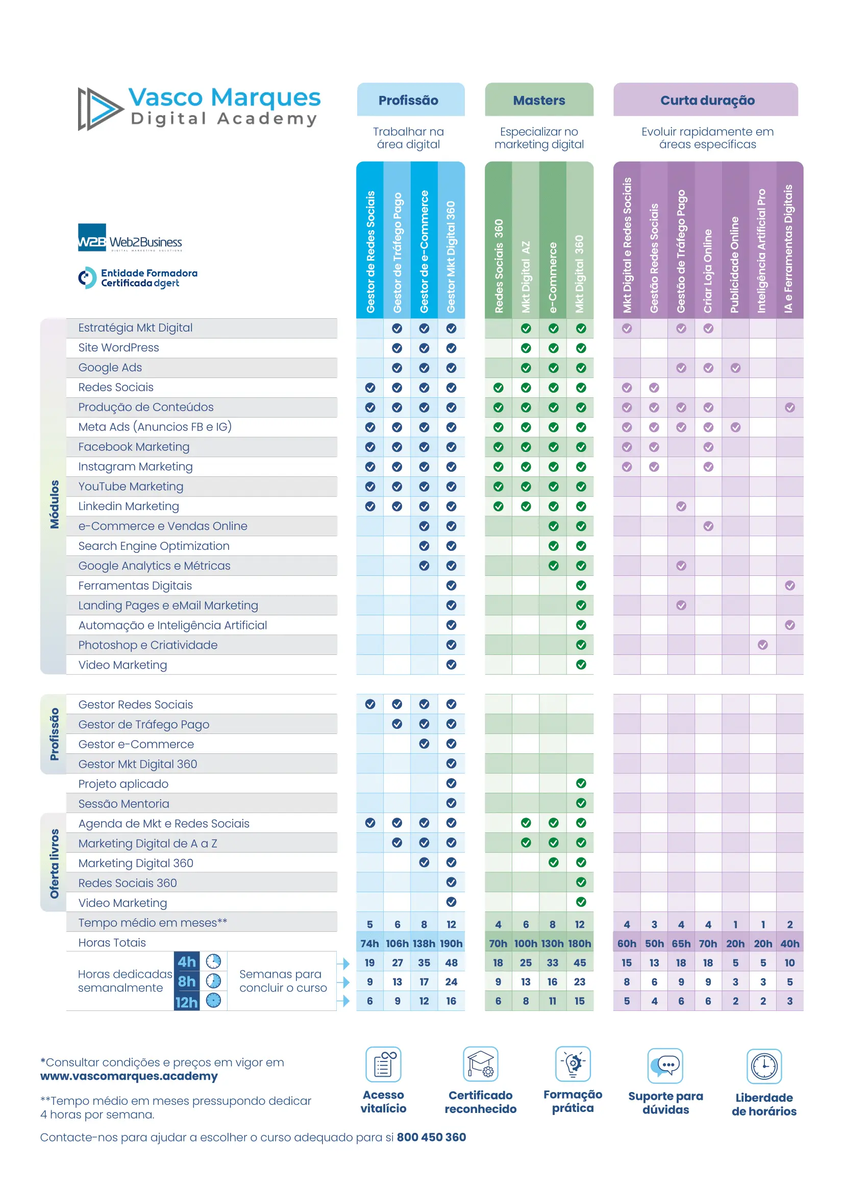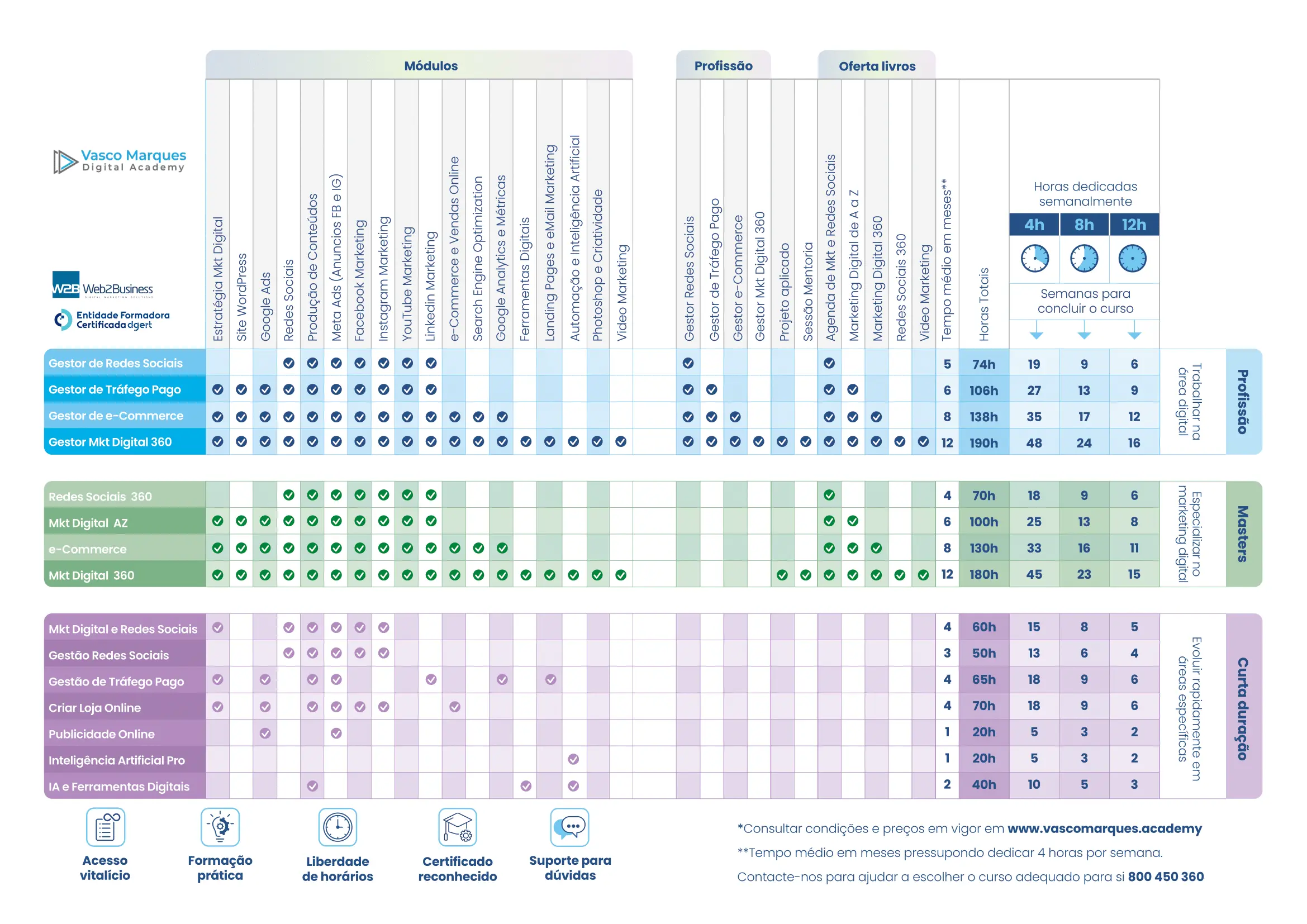 Os cursos disponíveis de Vasco Marques são elegíveis para o cheque formação. O curso mais procurado e com mais alunos é o Master Marketing Digital de A a Z.